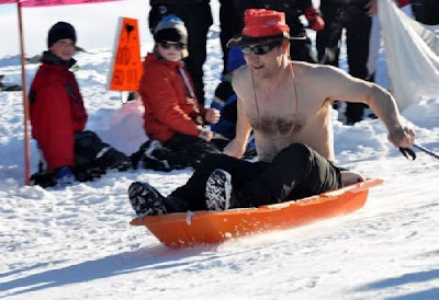 People racing down the mountain on almost anything but sledges.Not Your Everyday Sledge